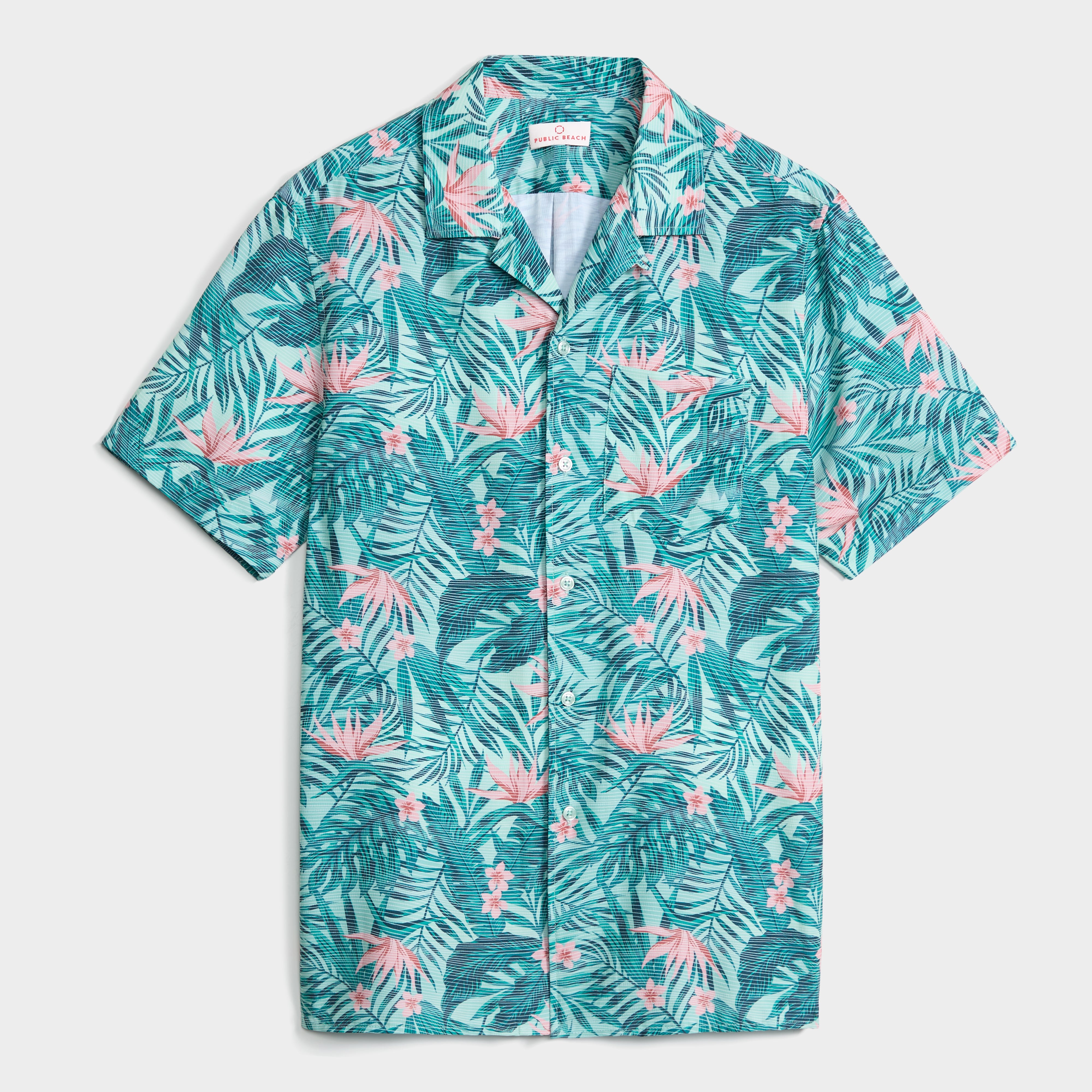Bring tropical energy to your wardrobe with the TROPICAL PULSE Shirt by PUBLIC BEACH. Crafted from 4-way stretch seersucker fabric, this Cuban-collar shirt offers comfort, flexibility, and breathability. Its vibrant aqua green print captures laid-back island style, perfect for summer outings, vacations, or casual seaside moments.